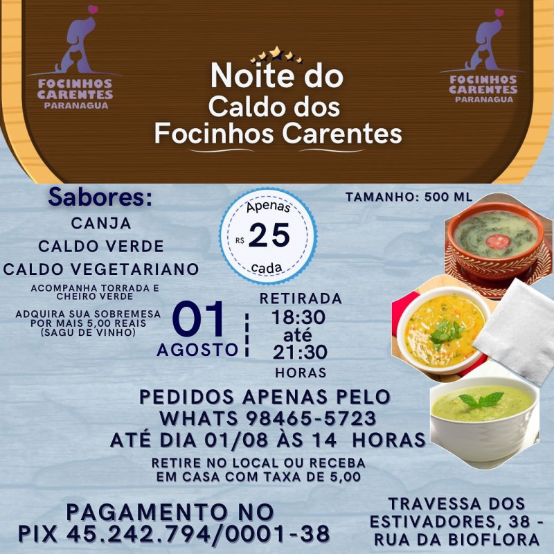 Além de ajudar um focinho, você também poderá saborear um caldo feito com muito carinho pelos voluntários da ONG!